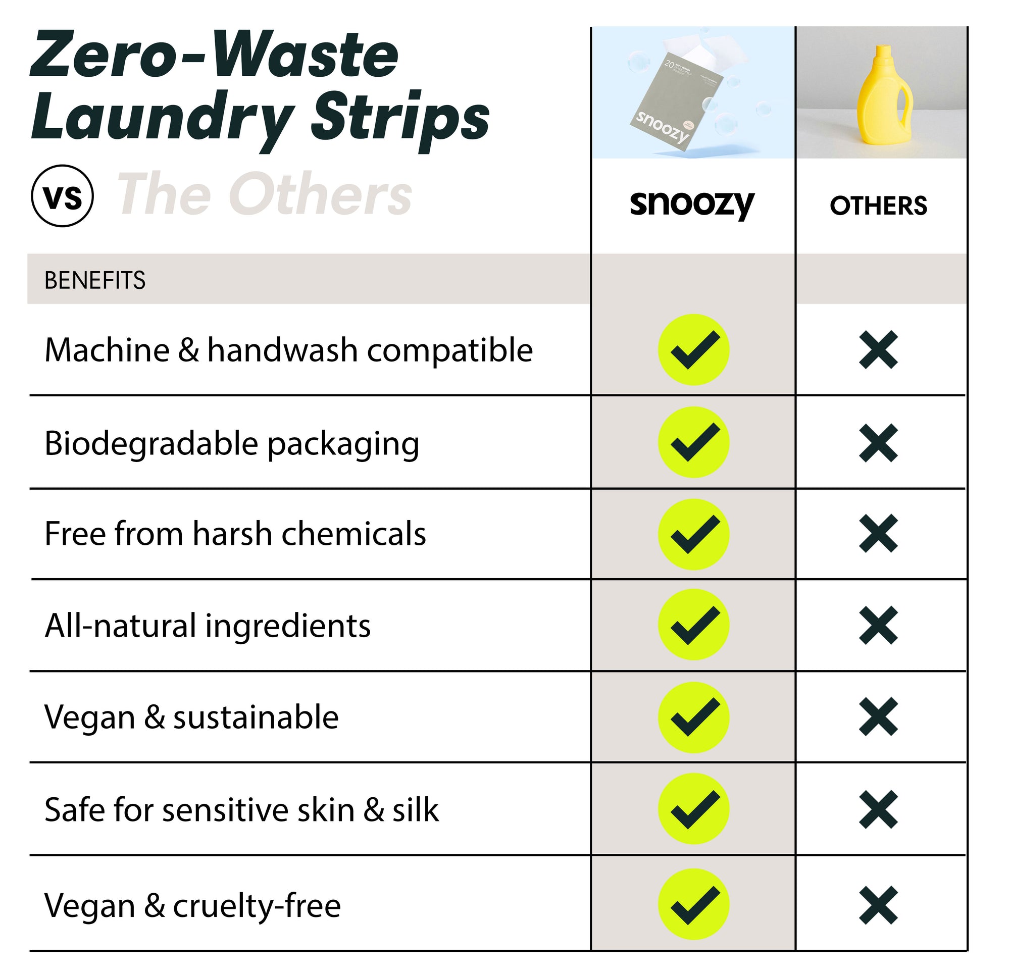 Snoozy’s Zero-Waste Laundry Strips are here to transform your laundry routine. With biodegradable packaging and natural ingredients, you’re not just caring for your fabrics—you’re caring for the planet.